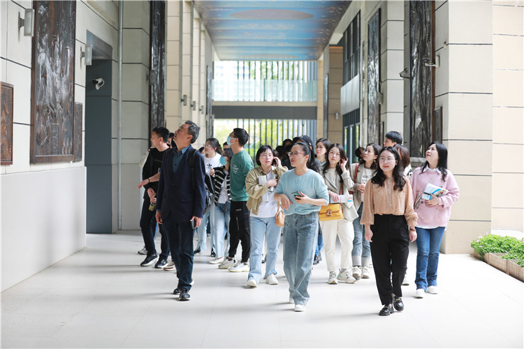 徐小英副校长、金鹰副校长带领同仁们参观了校园,为来访教师介绍了光影之道、时间之书、星空之问、历史之路、运动之律、静雅之寓、四时之序、米宝之族等时间文化景观。随后,来到闻远楼会议室,金鹰副校长为大家作了简短的介绍并表达了真切的欢迎。在观看学校文创视频后,老师们来到教室进行课堂观摩。