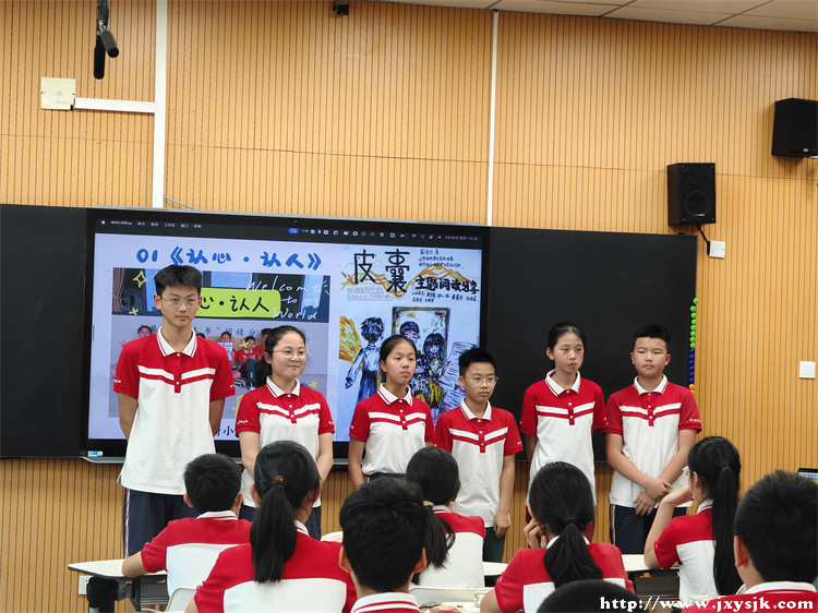 共读一本书,悦享书世界。伍叶佼老师将课堂的主导权交给了学生,请各小组的代表上台进行共读一本书的分享展示。学生们热情高涨,每一小组都展示了他们在阅读时的独特见解和深刻感受。整个分享过程中,同学们听得津津有味,不时发出阵阵掌声和赞叹声。通过这次共读一本书的活动,同学们不仅增长了知识,拓宽了视野,还学会了如何与他人分享自己的阅读体验,促进了彼此之间的交流与沟通。分享结束后,沈冠洲老师对同学们的精彩分享给予了高度评价,并鼓励他们在今后的学习中继续保持这种热情和探索精神。