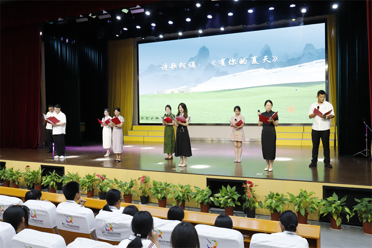 在典礼的高潮部分,班主任和各科老师老师共同为师生们带来了诗歌朗诵《有你的夏天》,深情地表达了老师们对学生的关爱与期望,朗诵结束后,现场响起了经久不息的掌声,同学们为老师们的辛勤付出和无私奉献献出了最高的敬意。