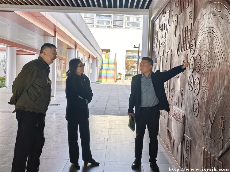 在嘉兴经开实验教育集团总校长陈海旺的带领下,评估组实地考察了校园环境,重点走访了“后浪厅”“陶然居”“鹅宠之家”“戏曲教室”等特色区域。专家们对学校将陶行知“生活即教育”理念融入环境创设的实践表示高度认可。